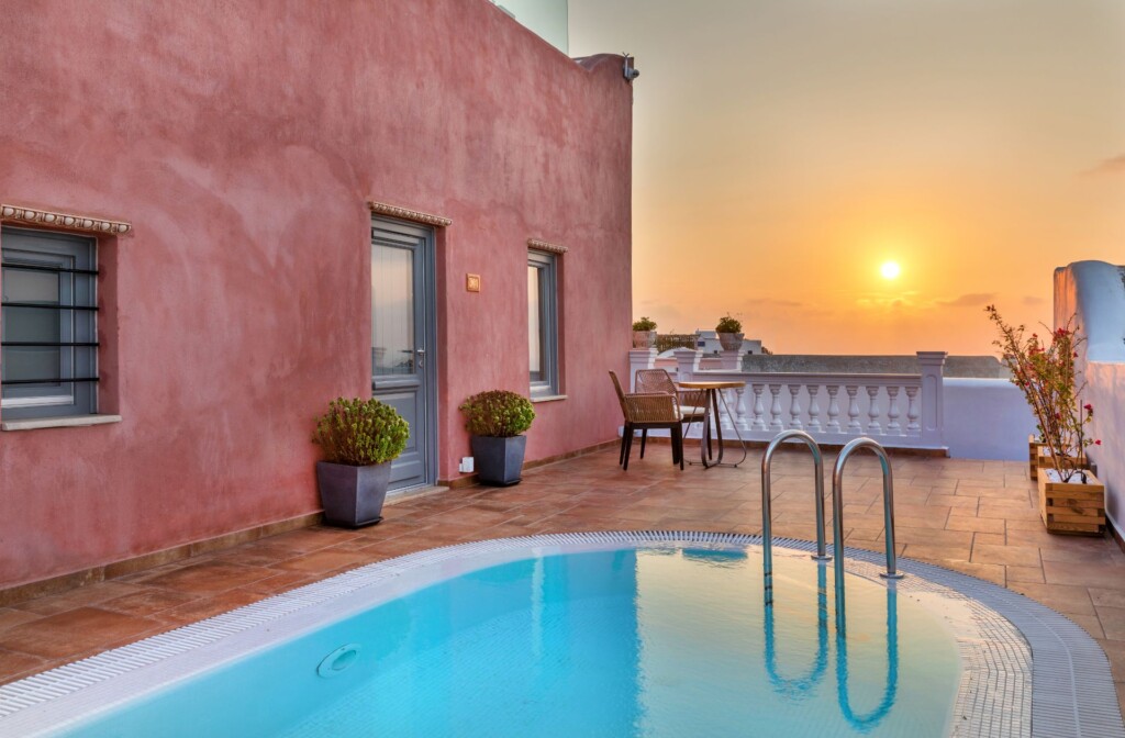 Why choose Oia village. 04 miles from Sunset in Oia. At Oia Sunset Villas you can look forward to a roundtrip airport shuttle a poolside bar and a free grocery shopping.